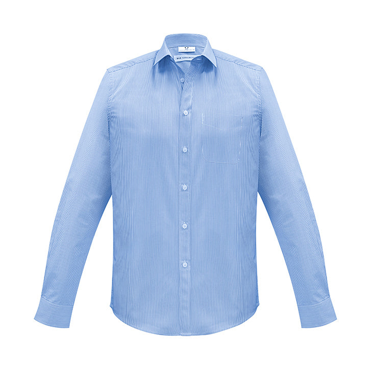 They have a yarn-dyed fabric with a mini-fine stripe for close-up detail that won't detract attention from your logo. Classic fit with a modern collar for a sophisticated appearance. Also features a curved hem that can be worn in or out, a chest pocket, twin back pleats as well as an adjustable cuff.