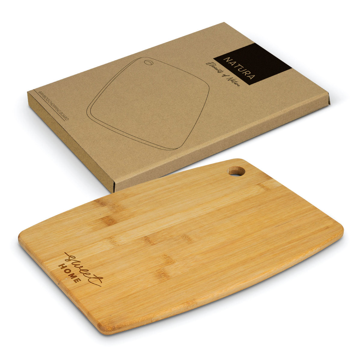 Description: These natural bamboo chopping boars are a must-have for any kitchen, providing a durable and functional surface for all your food preparation needs. Made from eco-friendly and sustainable bamboo material, it is resistant to knife marks and bacteria, ensuring a safe and hygienic workspace. Packaged in Natura branded natural packaging, it adds a touch of elegance to your kitchen while providing the performance you require. Please note that due to the natural characteristics of bamboo, variances in grain pattern, color, and branding may occur.